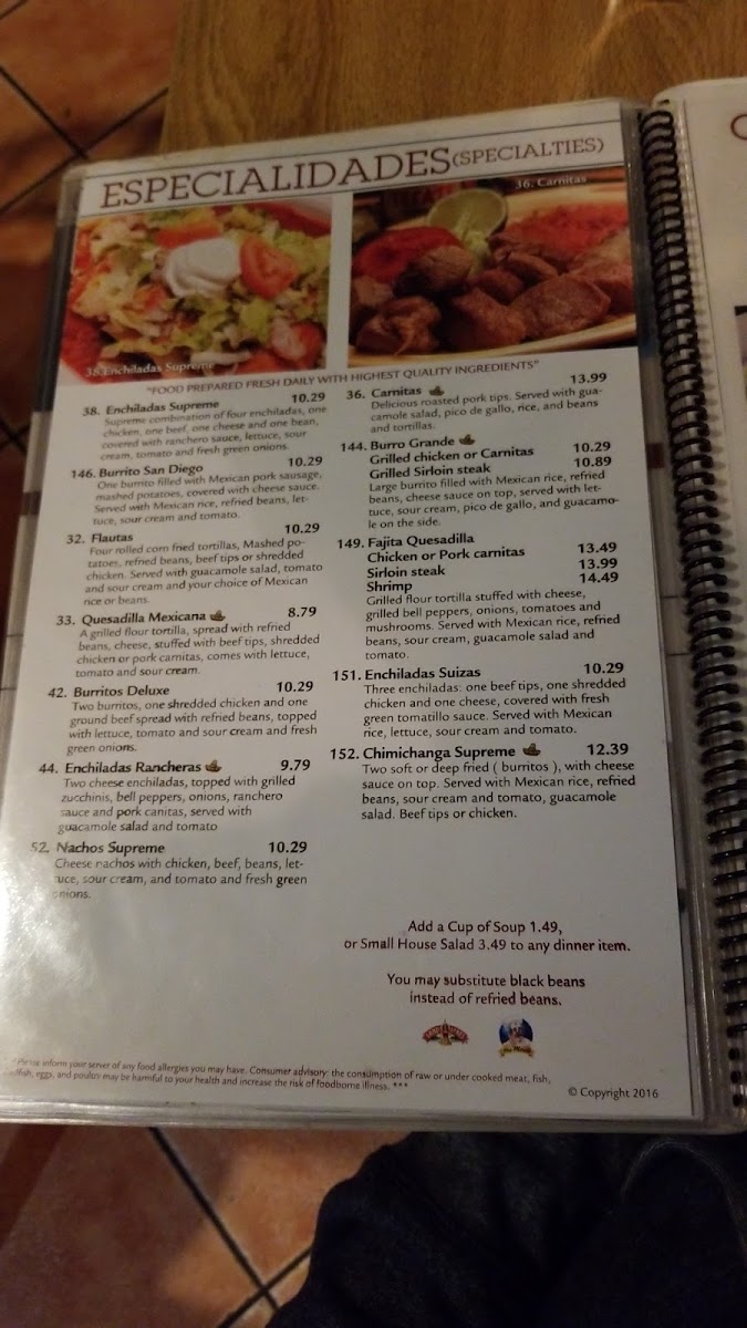 - The Enchiladas Suizas are a standout, draped in a zesty green sauce and served with a side of refried beans and rice.